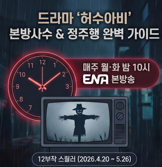 ‘허수아비’는 ENA 월화 밤 10시에 방송되는 신작입니다. 출연진을 궁금해서 이 포스팅을 찾았더라도 드라마 편성과 시청 경로를 먼저 알아두면 훨씬 보기 편한 작품인데요. 총 12부작으로 짜여 있어서, 길게 끌기보다는 인물 간 긴장감을 빠르게 밀어붙이는 구조로 읽힙니다.